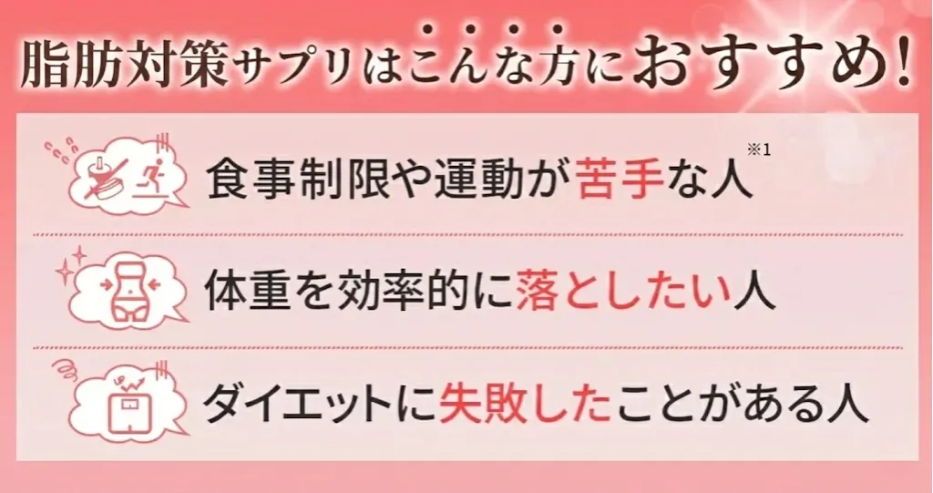 普通のダイエットサプリでは満足しない、大人のガンコな脂肪をなんとかしたい人におすすめです。