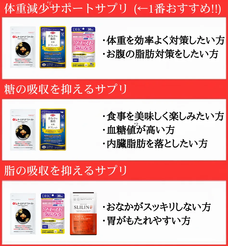 最後になりますが、今回紹介した本当におすすめの脂肪対策サプリをまとめておきます。