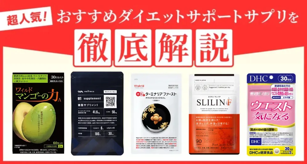 今回、編集部は、体重*1や脂肪を減らすのを助ける機能が消費者庁へ届け出られたダイエットサプリの中でもおすすめの5商品を選出し徹底的に解説していきます。