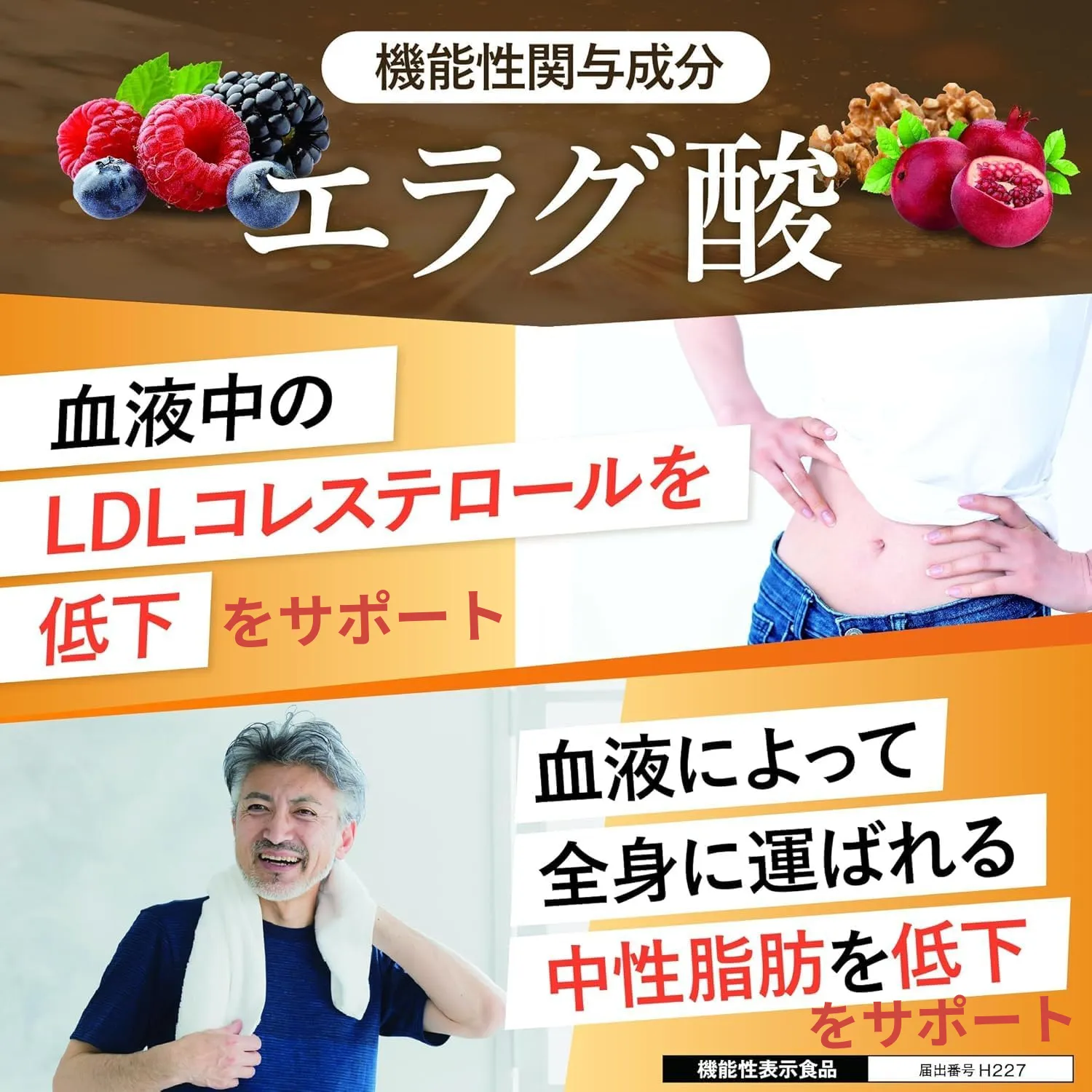 なんと、「エラグ酸」はコレステロールと中性脂肪をWで対策してくれるんです!