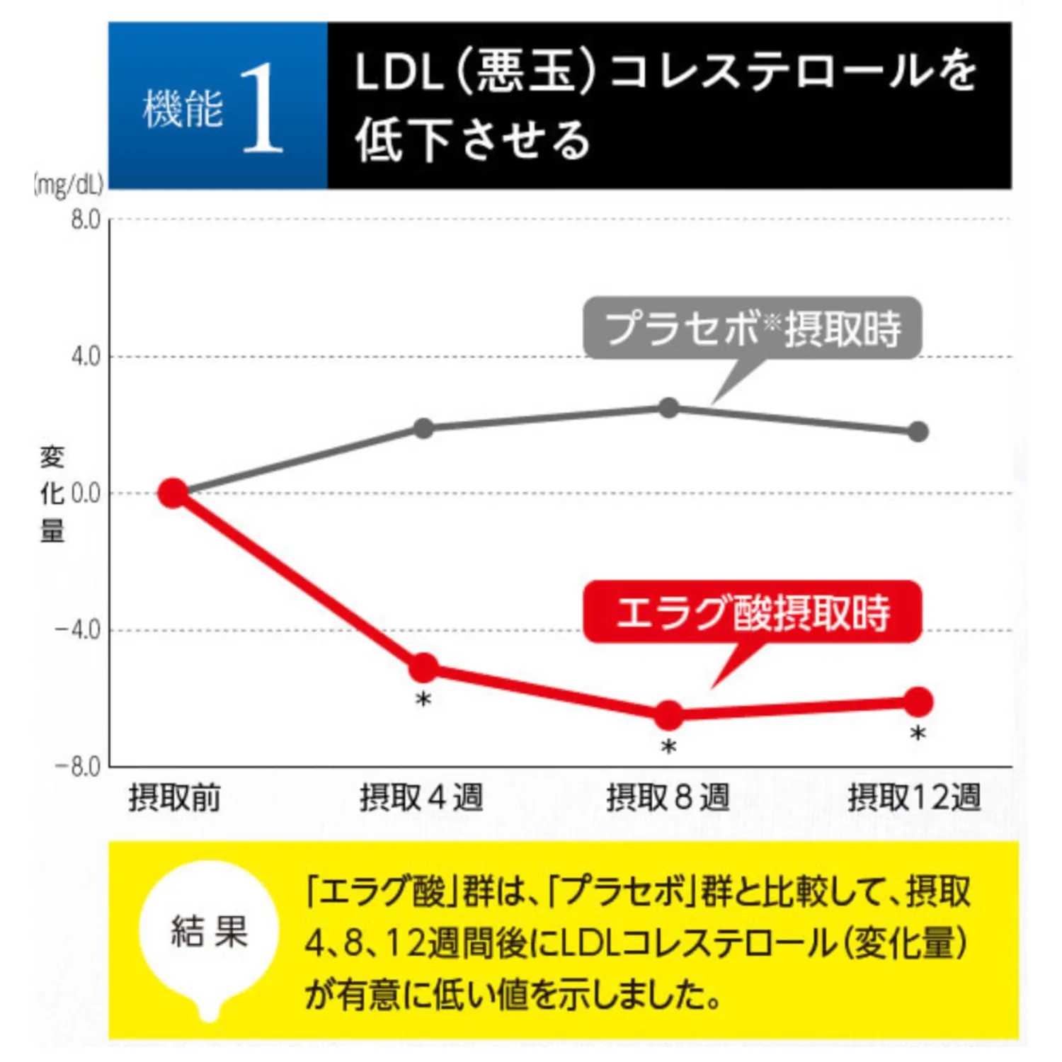臨床試験で8週間でLDL(悪玉)コレステロール値が下がることが確認されています!